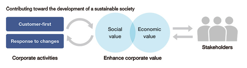 We strive to support our customers’ choice of a life “Filled with Emotion,” by increasing customer experience value through high-value-added products tailored to individual customer needs and services that utilize technology.